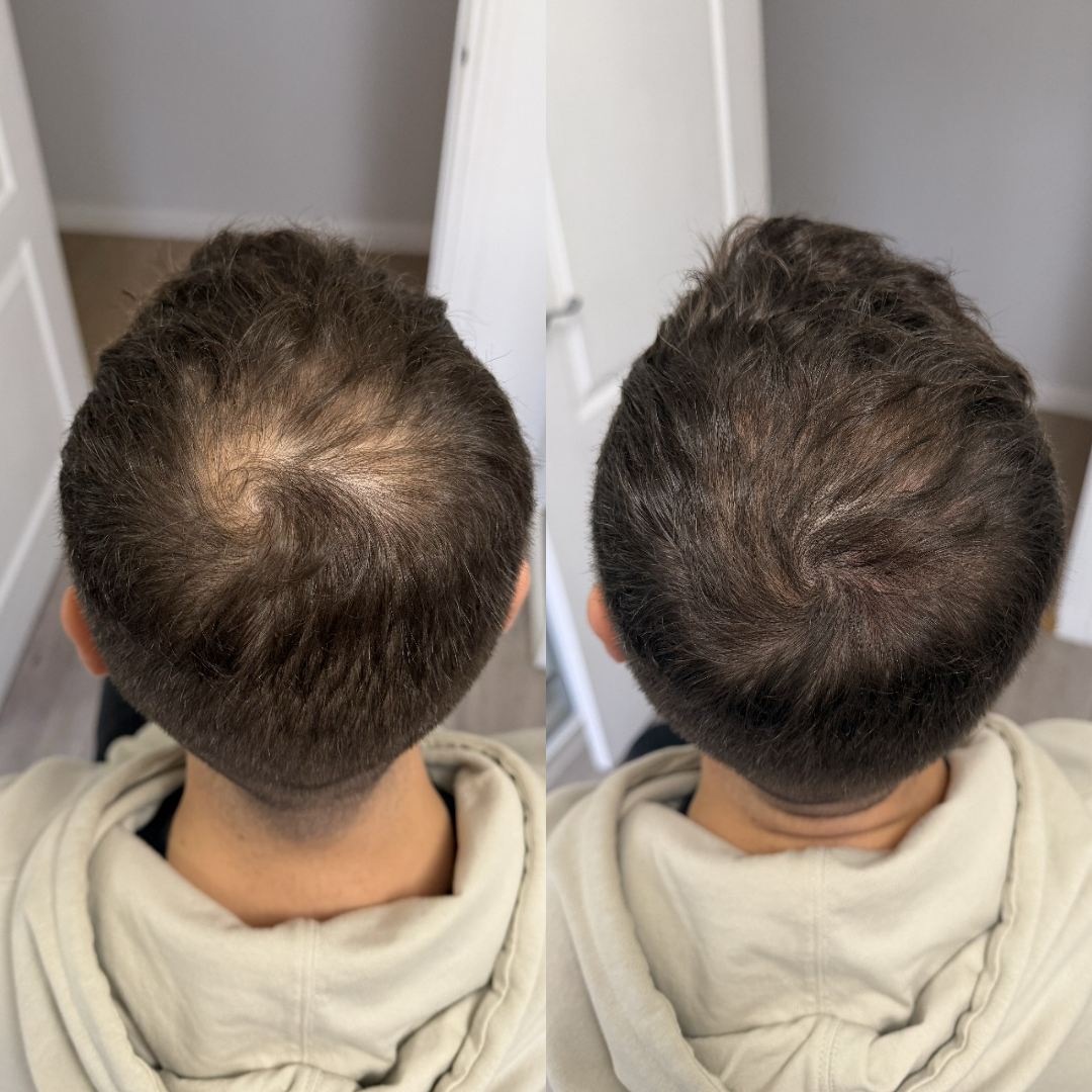 It’s never the whole picture. It’s the thin spots you notice first. The hairline that doesn’t look the same.